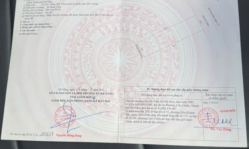 BÁN ĐẤT BÀU MẠC 17, LIÊN CHIỂU, ĐÀ NẴNG – DIỆN TÍCH 95M² NGANG 5M, ĐƯỜNG 7,5M, LỀ 3,5M