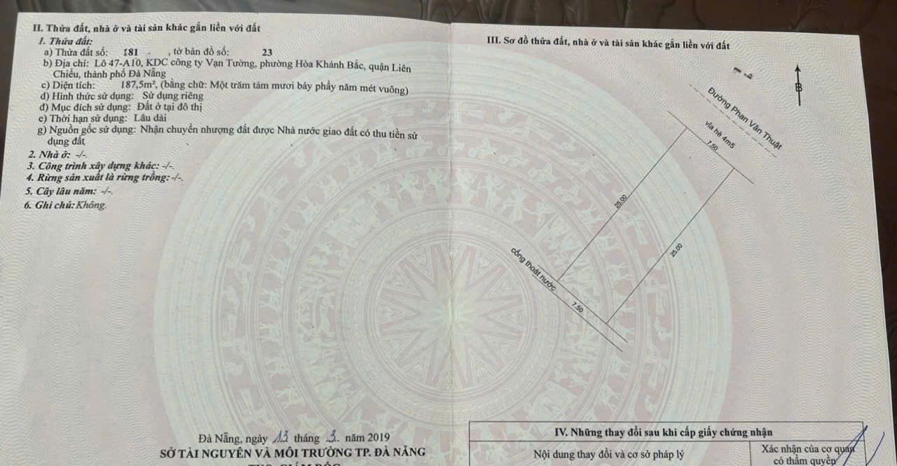 BÁN LÔ BIỆT THỰ PHAN VĂN THUẬT, LIÊN CHIỂU, ĐÀ NẴNG – DIỆN TÍCH 188M² NGANG 7,5M, ĐƯỜNG 7,5M – VIEW CÔNG VIÊN, GẦN BIỂN