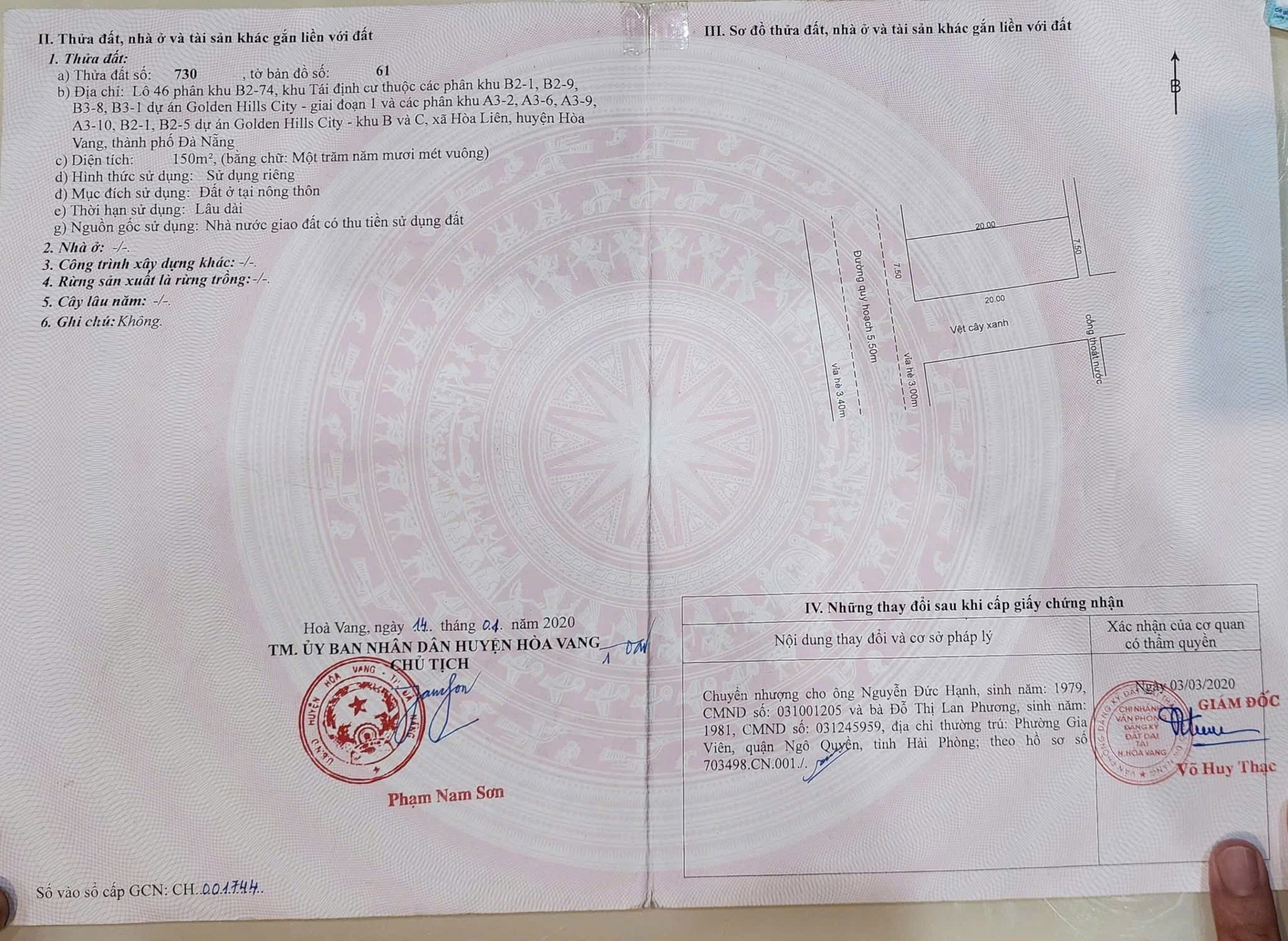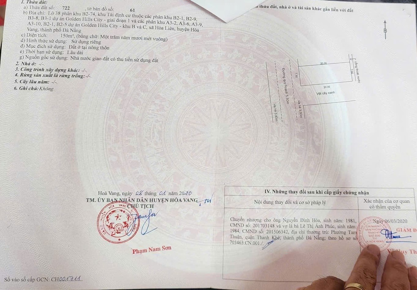 🔴 BÁN LÔ GÓC DỰ ÁN GOLDEN HILLS CITY, LIÊN CHIỂU, ĐÀ NẴNG – DIỆN TÍCH 150M² NGANG 7,5M, ĐƯỜNG 5,5M, LỀ 3M